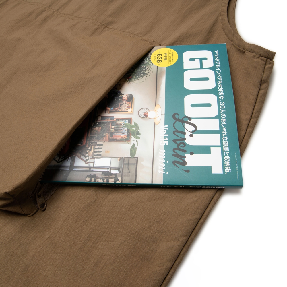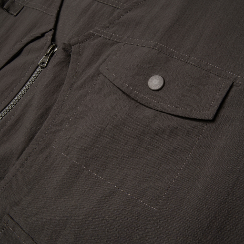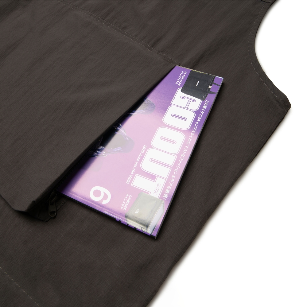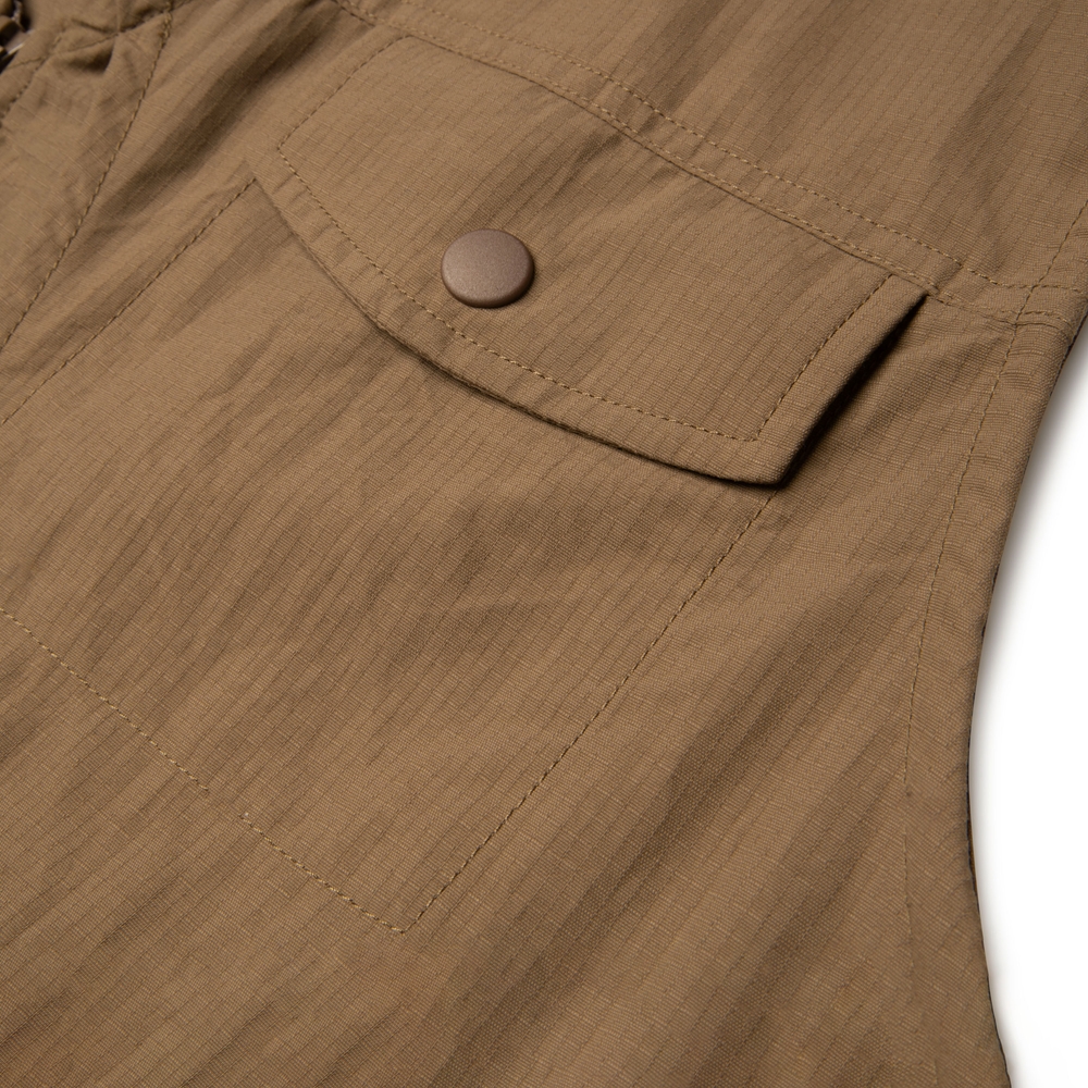 將經典戶外獵裝背心元素融入寬鬆版型,在穿搭造型上達到更多樣及舒適的效果,並特別挑選防潑水布料,不僅提升整體防潑水功能,還增強其抗汙性,使其更適合應對各種戶外活動或者日常穿搭。融合實用性與經典的同時,整體也呈現出低調復古的休閒風格。