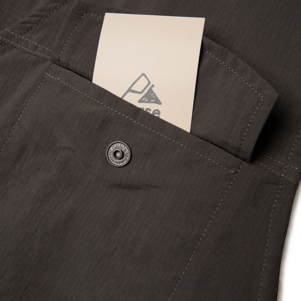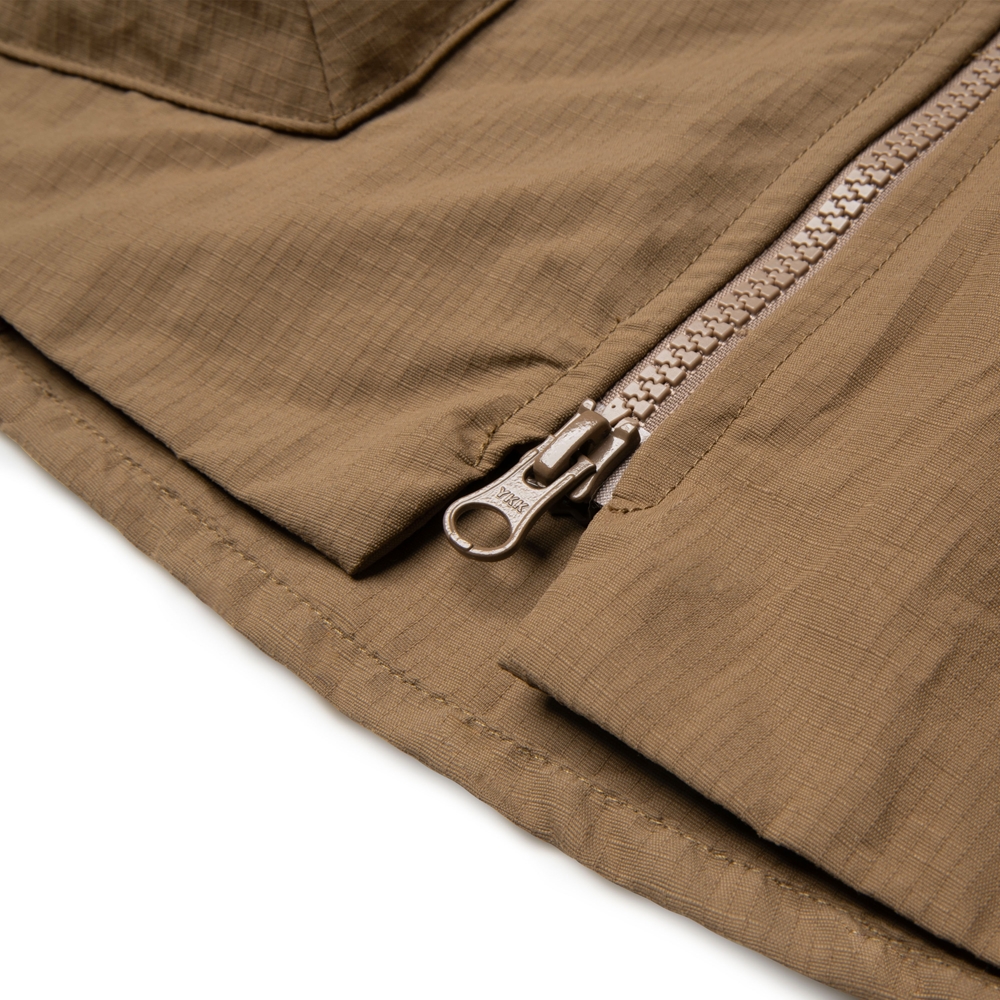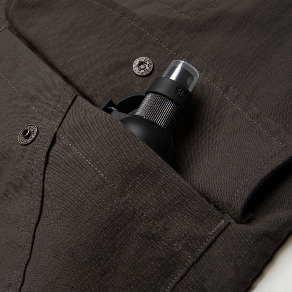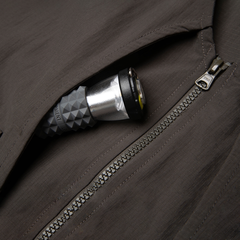 將經典戶外獵裝背心元素融入寬鬆版型,在穿搭造型上達到更多樣及舒適的效果,並特別挑選防潑水布料,不僅提升整體防潑水功能,還增強其抗汙性,使其更適合應對各種戶外活動或者日常穿搭。融合實用性與經典的同時,整體也呈現出低調復古的休閒風格。