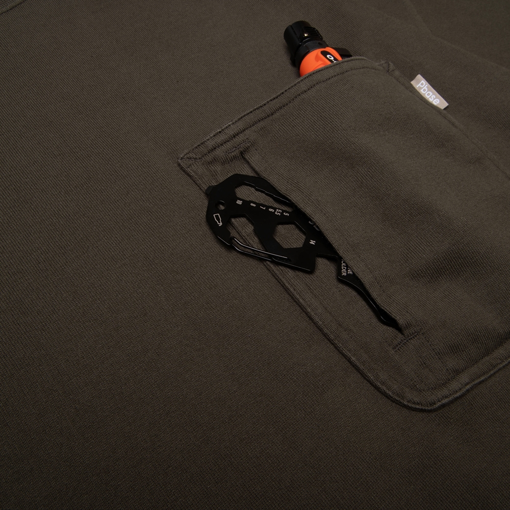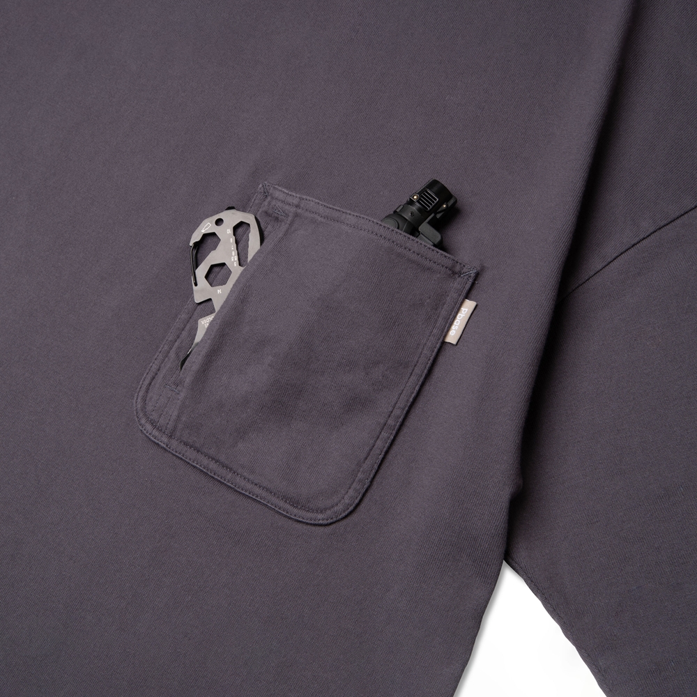 以輕微水洗處理賦予服裝洗舊的質感,搭配寬鬆的版型和舒適親膚的棉質面料,使其在日常或戶外等各種場合都能輕松穿搭。在胸口袋的設計上巧妙的切割出雙重空間,為整體造型注入低調別致的小巧思,整體展現出低調復古的休閒風格。