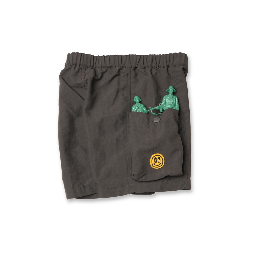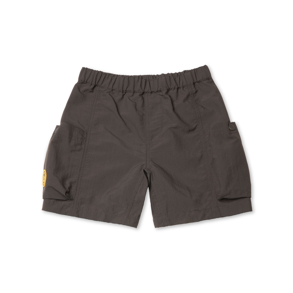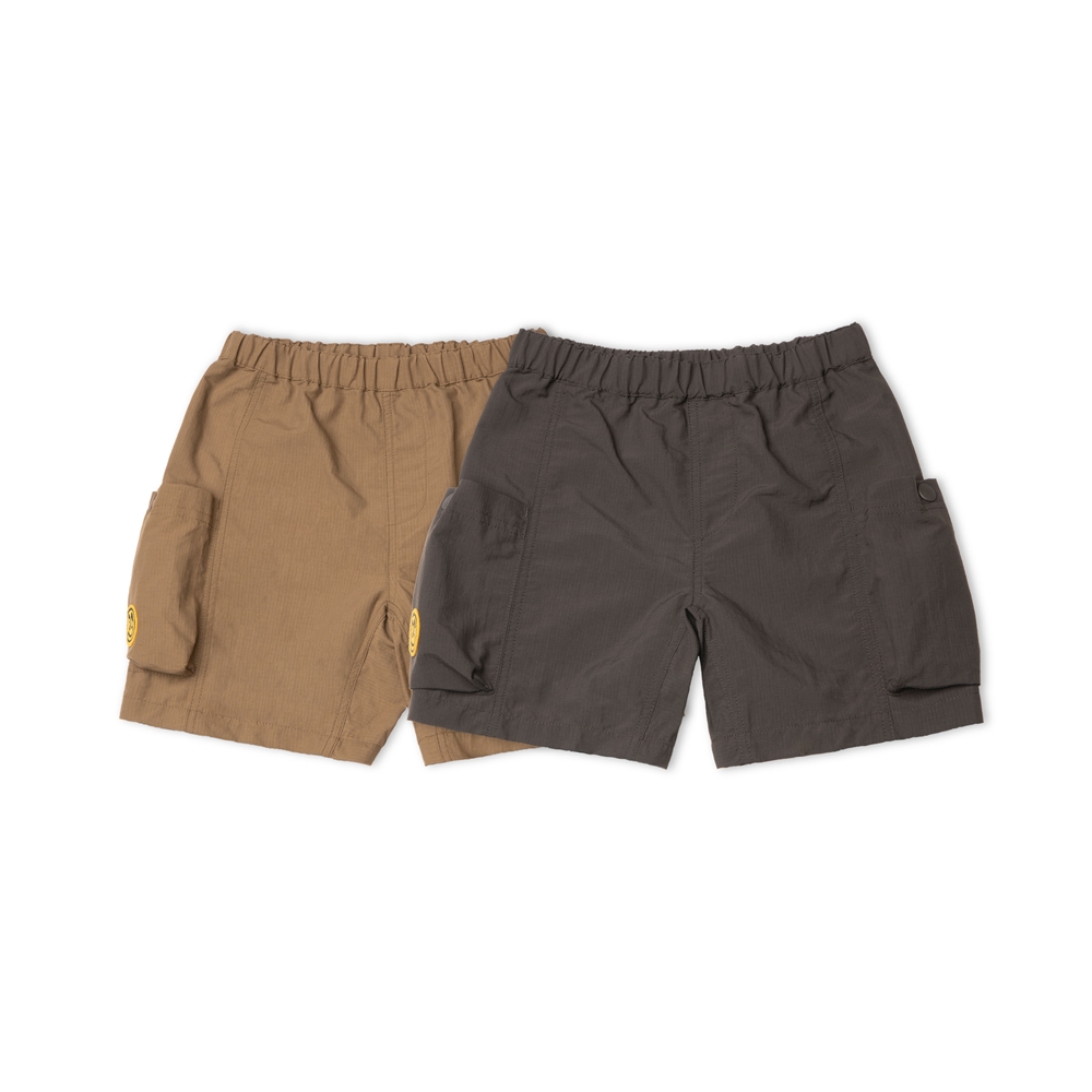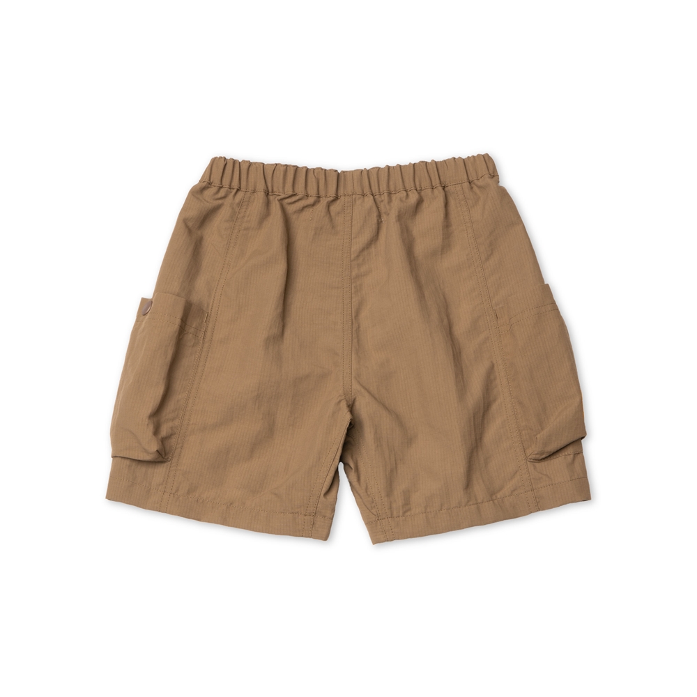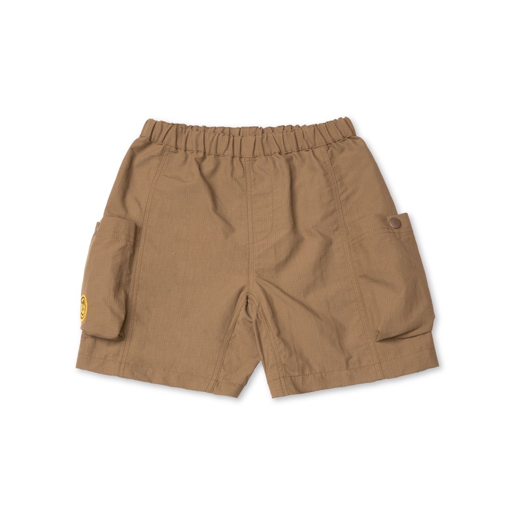 取樣自戶外口袋短褲,設計上保留兩側的大容量口袋,讓孩子們可以隨身攜帶他們心愛的玩具或必需品,並特意挑選防潑水布料,不僅提升褲款的防潑水功能,還增強其抗汙性,防止各種玩耍時可能留下的髒汙。